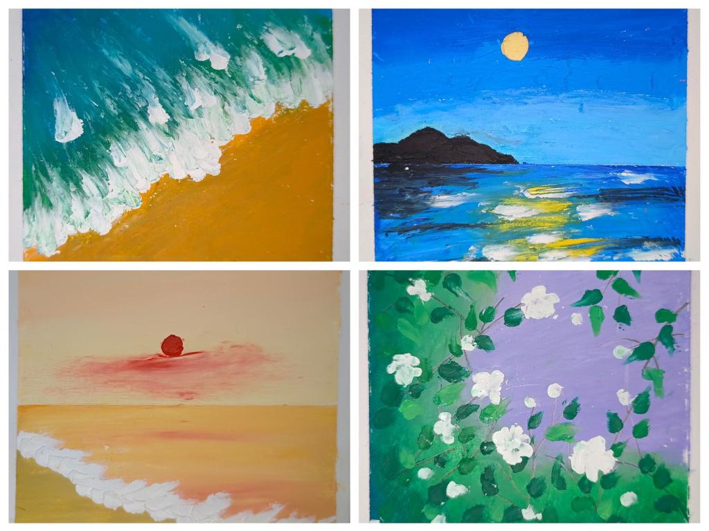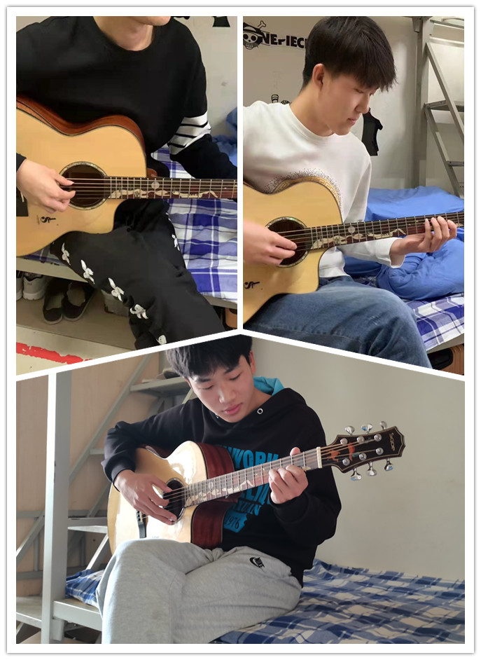 拿起一把吉他在宿舍你一句我一句地互唱着,嘴里哼唱着滴滴答答的小调,所有的所有都在这一刻被音乐治愈。在封校的闲暇时间里同学们也创作了一些美术作品以“艺”抗疫,共克时艰。