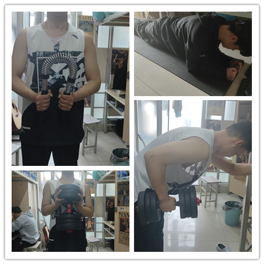 除了多样的室外运动宿舍里健身也是同学们的多数选择,只需要一张瑜伽垫和一个哑铃就可以,同学们赶快来打卡吧。一起来夜晚的山海操场吧,唱歌、跳舞、做游戏感受当代封校的大学生夜晚日常。听说隔壁的同学都羡慕哭啦。
