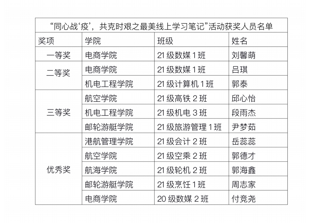 通过本次活动,提高了同学们的线上学习热情,让更多的同学认识到做好网课笔记对学习的帮助,养成记课堂笔记的良好习惯。发挥优秀笔记的模范带头作用,夯实学科基础。