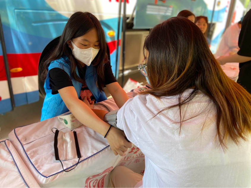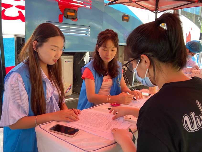 活动现场,前来献血的学生络绎不绝,在学院领导和老师的带领安排下不惧炎热、秩序井然的排队参加无偿献血。志愿者们在现场引导献血者进行登记填表、健康监测、血压测量等。医护人员用专业的手法为献血者消毒、抽血、止血,并且还有专门的医护人员进行贴心的问候,疏解献血者的紧张情绪。献血结束后,志愿者为献血者送上爱心礼品并分发献血证,同时询问并观察献血者身体恢复情况。