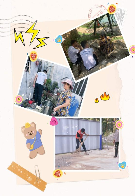 由于疫情原因,在重要的路口值班,值班时需要对外来人员进行统计,避免从中高风险地区回来的人员进入村内,每天早上当地村民需要进行核酸检测,我们的志愿者协助检测人员,维持队伍秩序,帮助扫码;完成核酸检测后,我们志愿者开始对村里重要街道进行打扫卫生,清理垃圾,也会到村民家中帮忙,陪村里的留守老人聊天。