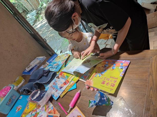 书屋每天早上八点开门,家长们会早早的将孩子送到书屋门口等待,在书屋外总能听到孩子们的读书声和笑声,等下午书屋关门时,孩子们还久久不愿离开,只因为他们能在书屋里学到很多知识,也能玩一些好玩的玩具,交到更多的好朋友。有两个双胞胎小朋友甚至“赖”在志愿者驻地不走,跟我们一起吃饭一起唱歌,跟在志愿者后边一口一个大姐姐大哥哥的,特别讨人喜欢。