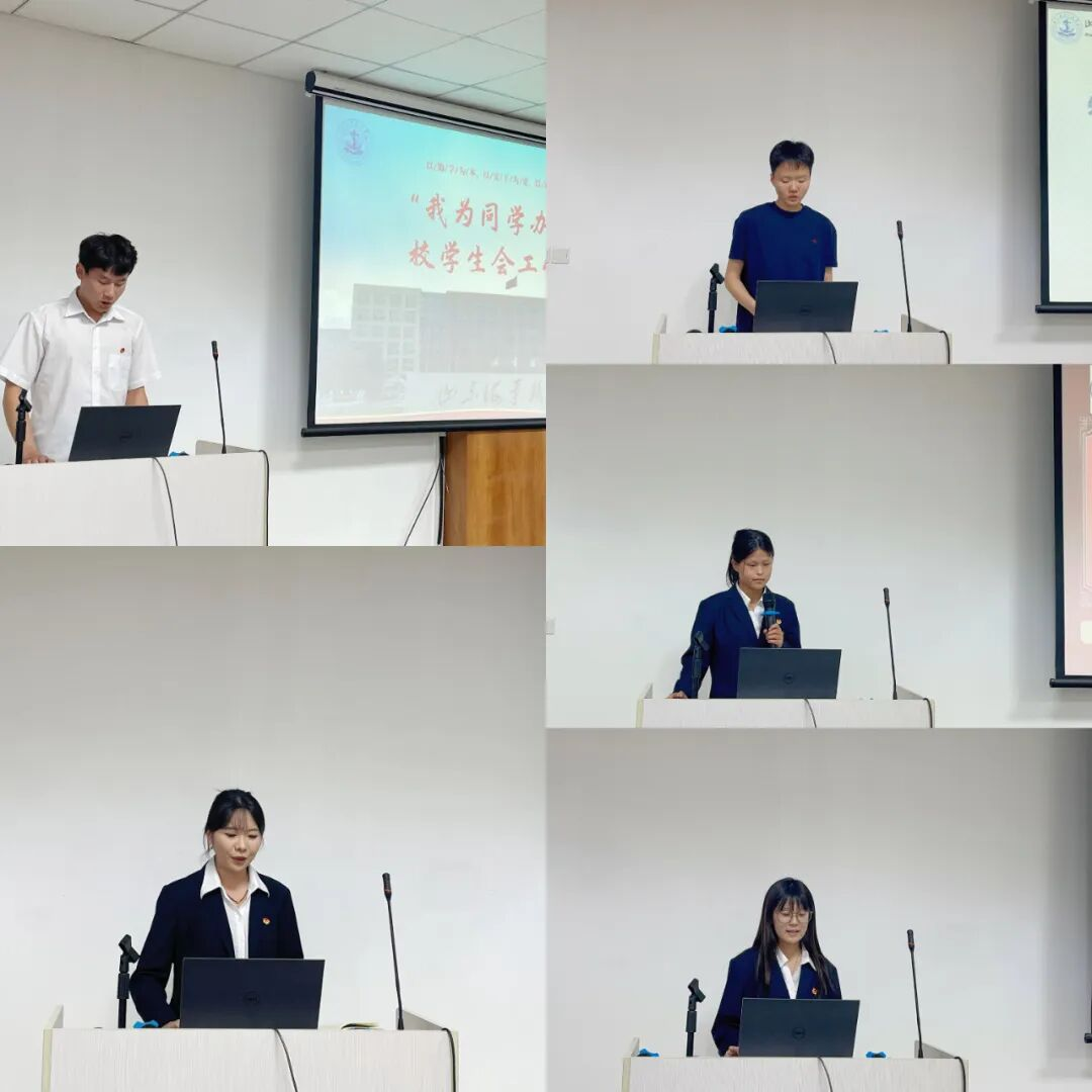 校院学生会依次进行项目汇报发言,在学业提升上,结合专业特色开设培训课程与实践活动;生活保障方面,优化校园设施、完善生活服务;身心健康领域,通过讲座、咨询、志愿服务等方式为同学排忧解难;文化建设层面,推动非遗进校园等特色活动,丰富校园文化生活。各学生会总结分享了项目开展中的经验和问题,相互学习借鉴。