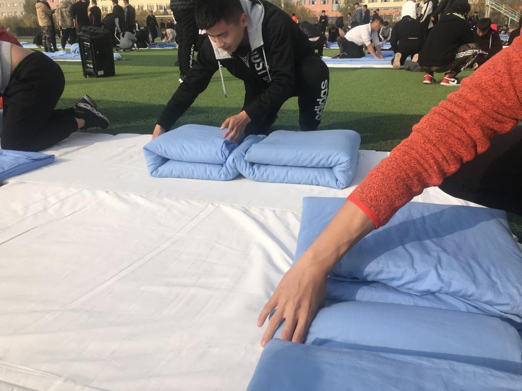 11月14日下午,叠军被大赛在操场举行。本次比赛以宿舍为单位进行团体赛。航海学院学生会成员作为工作人员,负责比赛场地划分和秩序维持工作。比赛过程中,各参赛选手高度投入、表情严肃、手法娴熟,努力的将自己的被子叠好;工作人员认真监督、一丝不苟,确保整场比赛的公平公正。