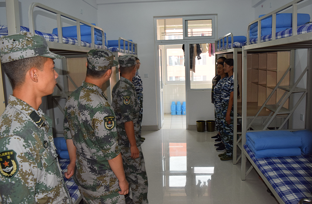 9月13日下午,全体军训教官在学生处处长助理吕玉国、公寓管理科科长崔海宁的陪同下来到学生公寓,检查内务成果,指导学生规范完成内务整理。