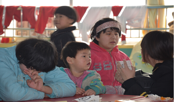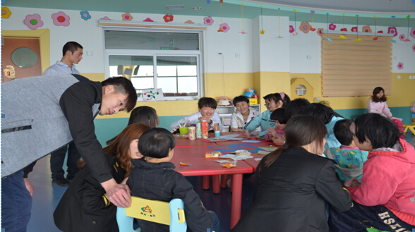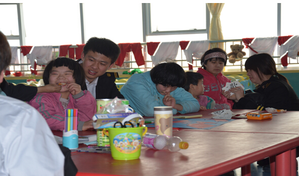 工作人员按照募捐流程接待了志愿者们,带领参观了儿童的卧室、活动室、教室及手工室等。孩子们的卧室整齐干净,活动室传来孩子们的欢快笑声,手工室孩子们的蜡笔画、油彩画、彩笔画栩栩如生,制作的手工面具涂鸦更是艺术范儿十足,走廊的墙上都是小朋友们的获奖证书、照片、及手工作品。据福利院工作人员介绍,福利院共有儿童一百多名,大到16岁,小到乳婴。大多数是患有残疾的儿童,但是我们看到更多的是他们的天真笑容,我们更加坚信他们是最棒的,最美的宝贝。